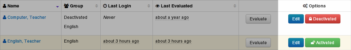 in the Options column to deactivate the account.