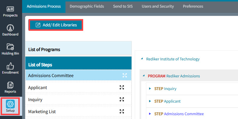 To add a Decision in Admissions, first go to the Setup Center and do the following: