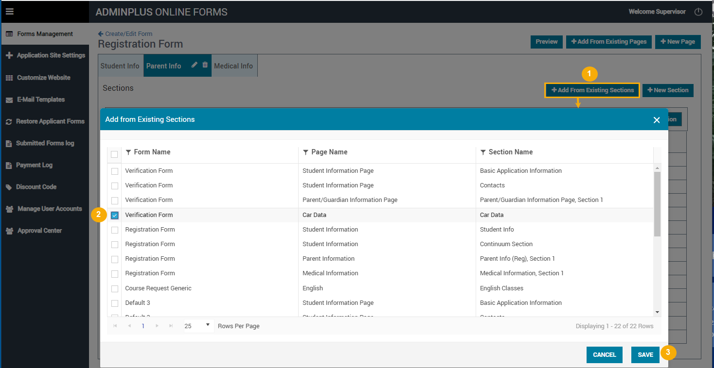 - Allow parents to add more sections of this type Select the check box to allow parents to add a contact by clicking +Add Contacts.