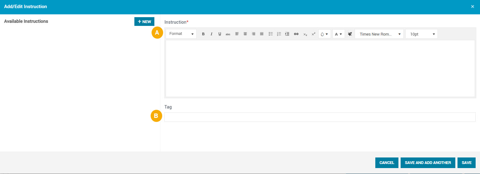 See the diagram and table below for description of the Add/Edit Instruction box.