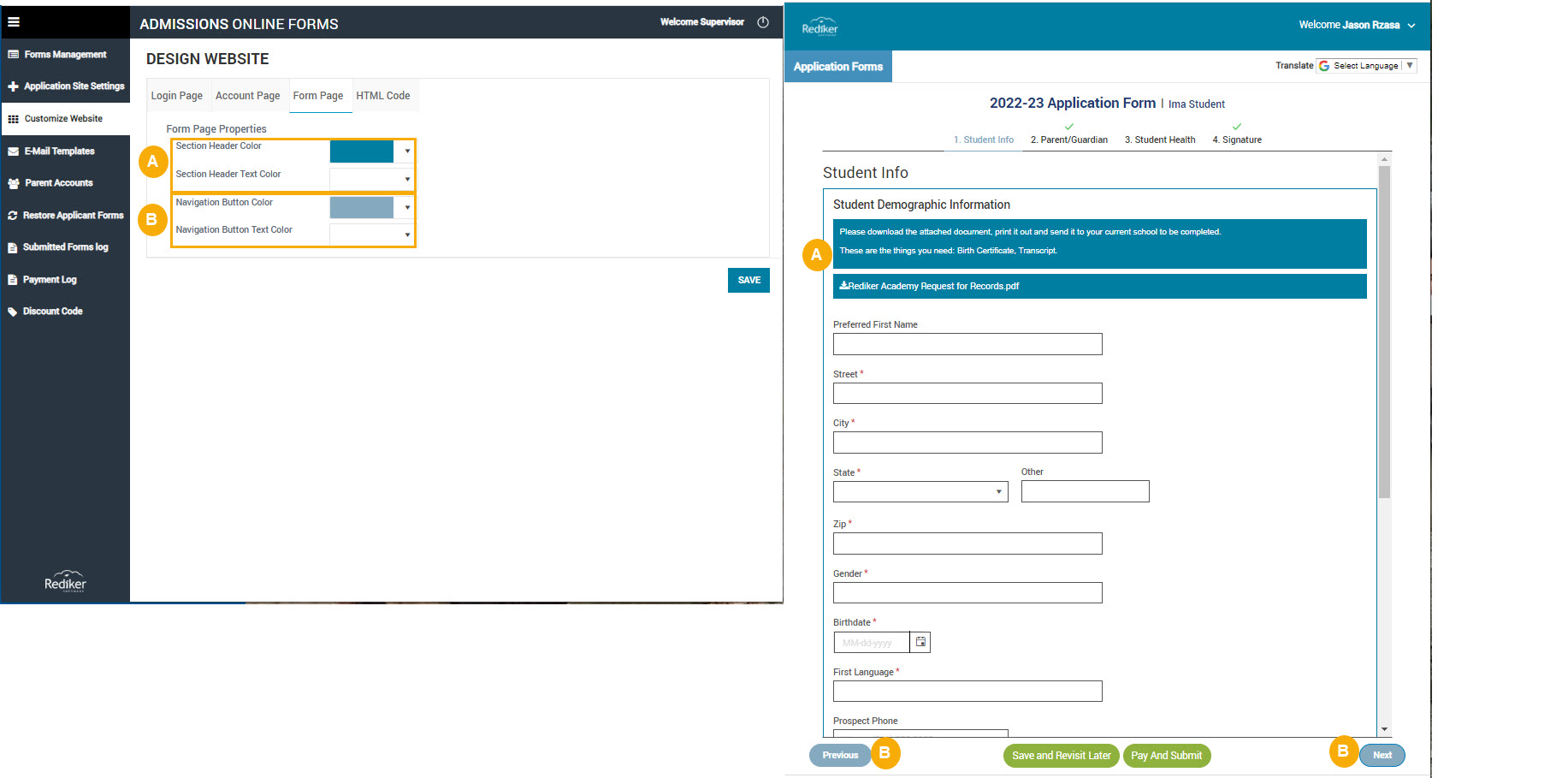 You can customize the color scheme for your school's forms by following these steps: