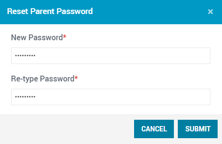 - The Reset Parent Password dialog box opens. Type a new password.