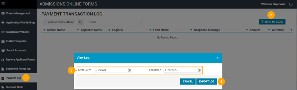 to select a Start Date and End Date for the range of dates for which you want to export payments. - Click Export Log.