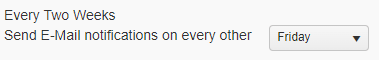 - If students and parents select to receive notifications biweekly, in Every Two Weeks Send E-Mail notifications on every other drop-down list, select the weekday students and parents receive automated notifications.