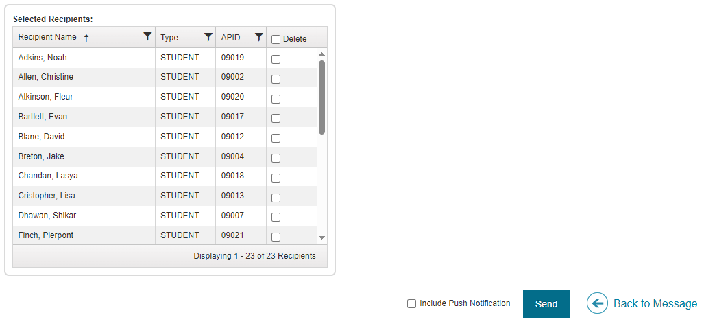 - To send a push notification to parents' mobile devices along with the portal message, select the Include Push Notificationcheck box.