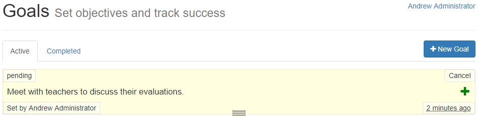 - Click Create Goal. The goal appears on the Active tab as pending.