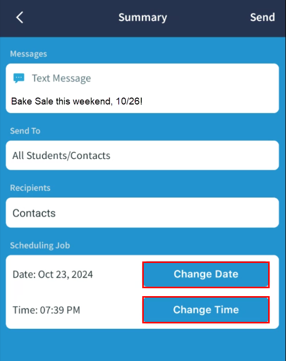Send To Configuration All Students/ContactsThe Select Contacts page opens. Proceed to step 3.