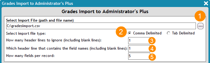 - For the How many header lines to ignore configuration, enter the number of rows Administrator's Plus is to ignore in the import file (that is, the number of rows before the grade data actually begins).