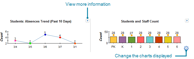 In the middle and right sections of the dashboard, you can display two charts of your school's data.