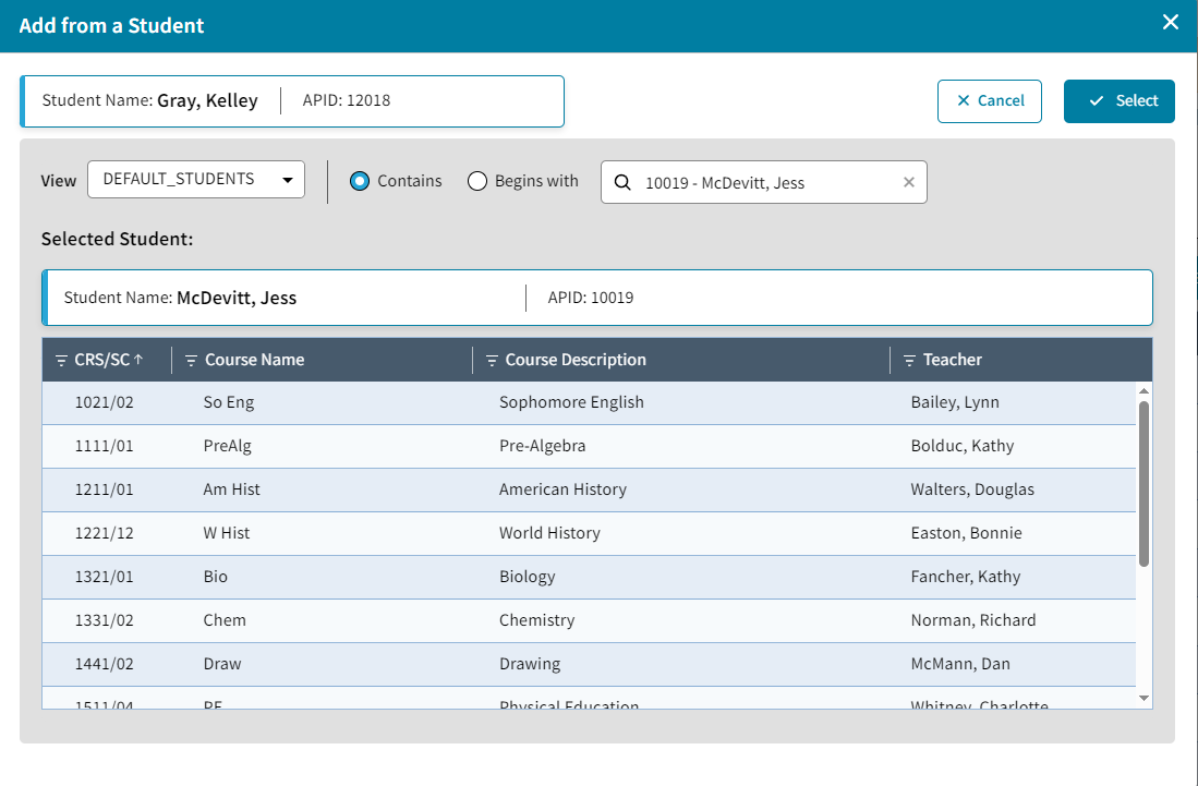 - On default, the Default_Students view is selected for search, or you can choose a saved view.