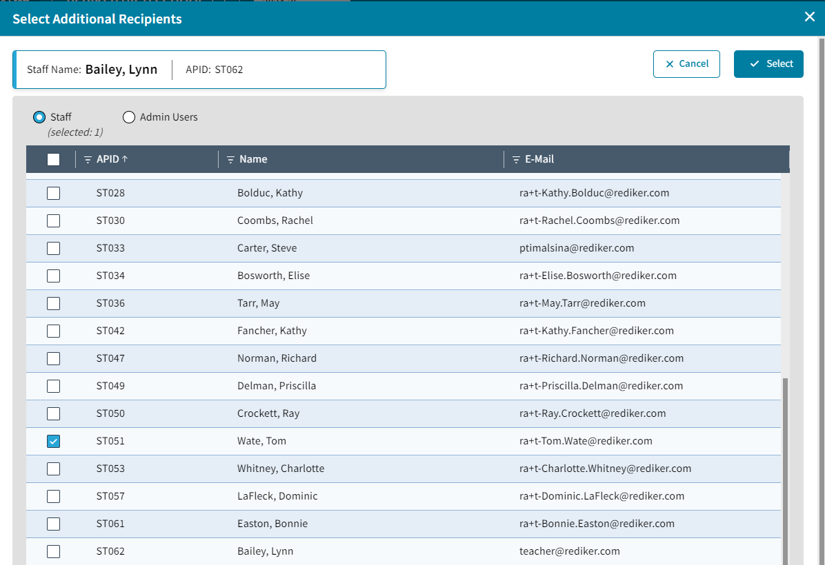 - Click Select to save the selected recipeints.