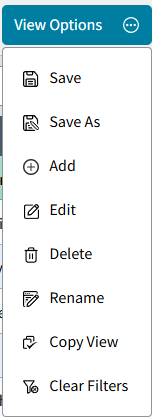 B | Lookup Views sent from Classic Administrator's Plus can be Added and Edited here on the Lookup screen. Any Lookup Views Edited or newly added in AdminPlus.com will not sync back to Classic Administrator's Plus. These are now independent of each other. Any changes made to any views in Classic will not be sent to AdminPlus.com after the initial sync sends the views. Select View Options to see the following options: