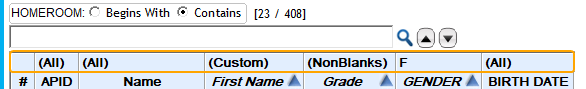 You can apply filters to the Lookup screen to display only the students or staff who fit the chosen demographic criteria.