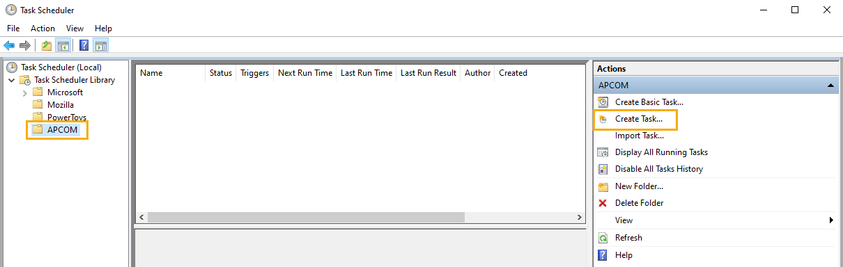 - Select the Task Scheduler Library and Right Click to create a New Folder.