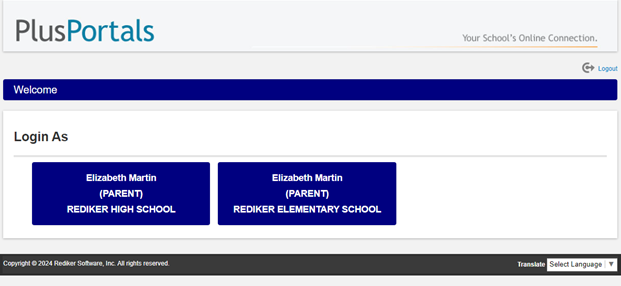 - Streamlined Access for Parents: Parents with children in different schools can easily switch between their student profiles without logging out or switching URLs. This functionality works through both the centralized organizational URL and individual school URLs.