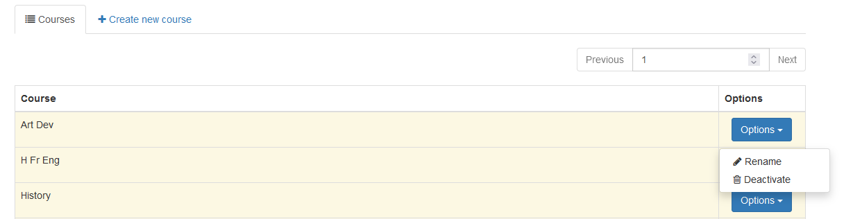 - You can then choose to "Create new course" or to rename or deactivate an existing course