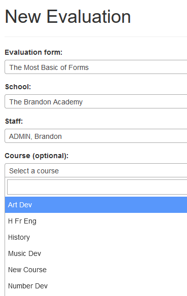 Courses can be setup so that you can select a course/subject when evaluating a teacher.