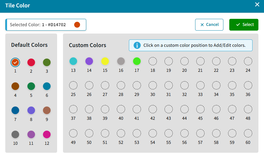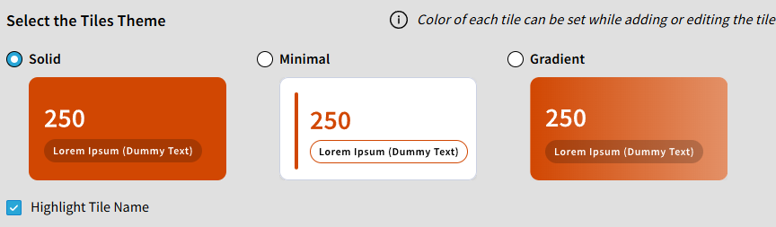 B | Select the Tiles Theme: The color of each tile can be set while adding or editing the tile. Choose from one of the following: