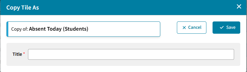 to save any change as a new Tile. The Save Tile As window will open. Enter a new TIle Title.