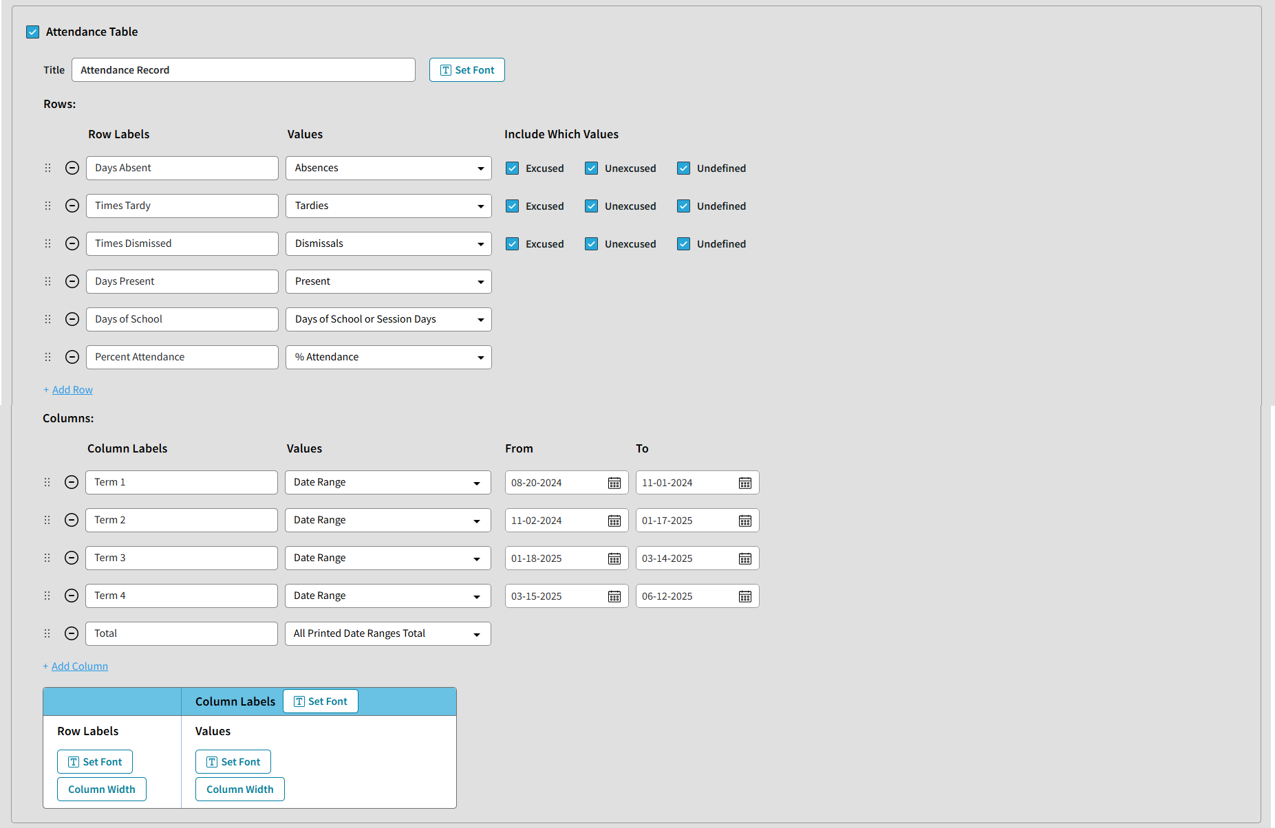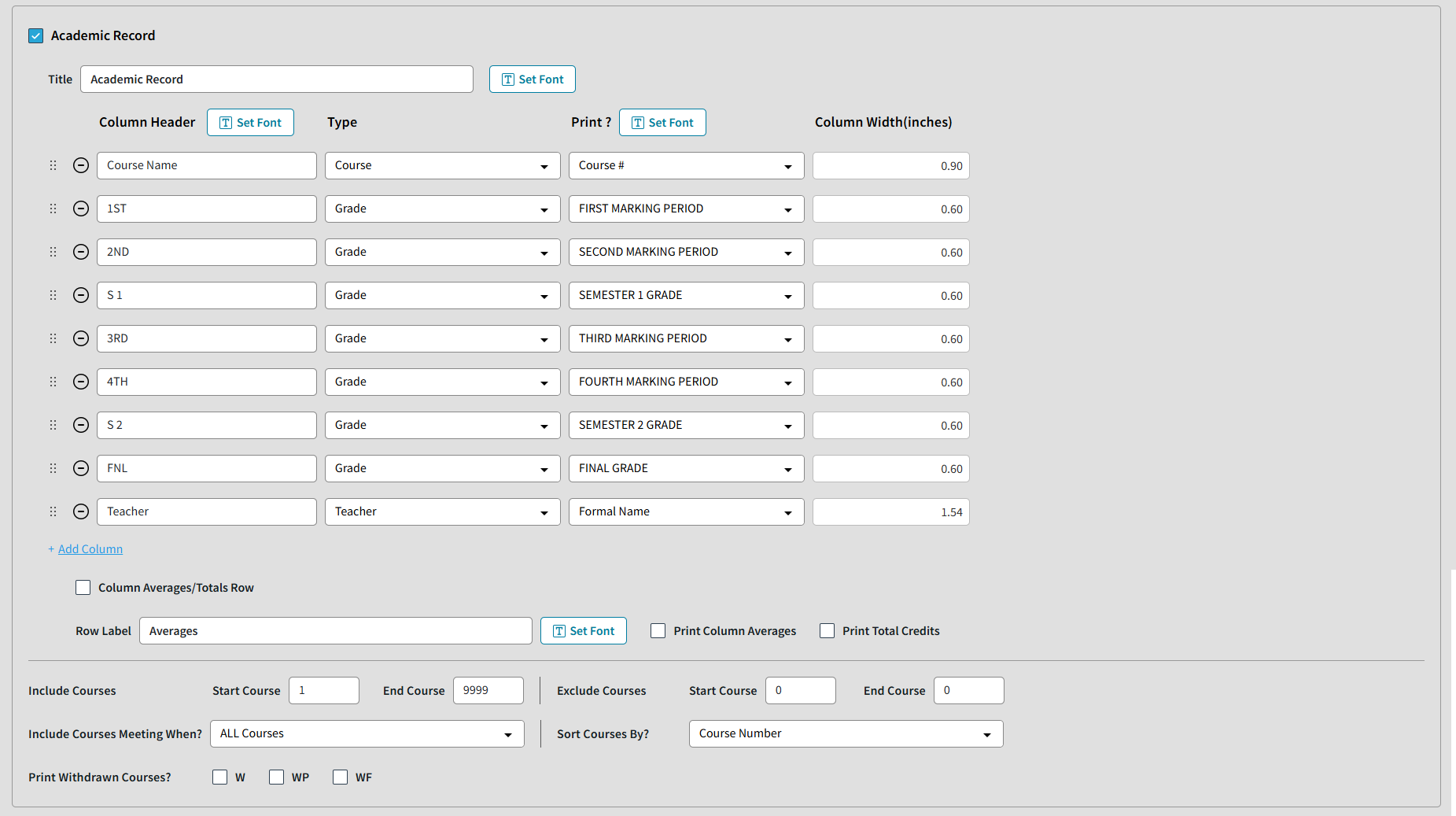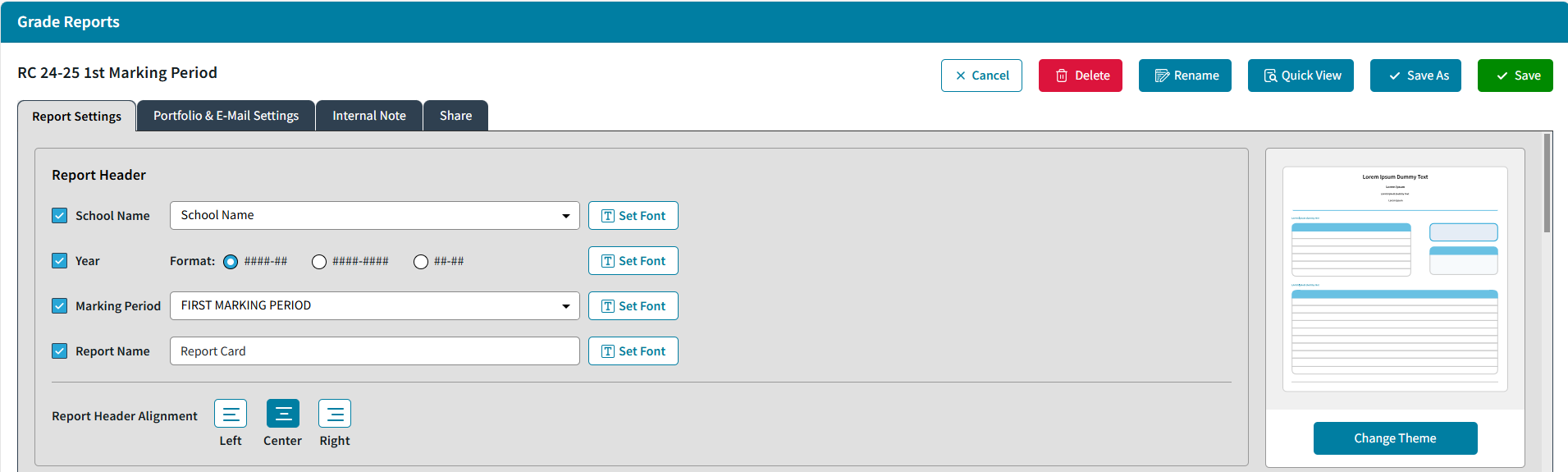 - Copy is the same as Save As. You can copy the settings and then go back to make edits like change the marking period selection on the Report Header.