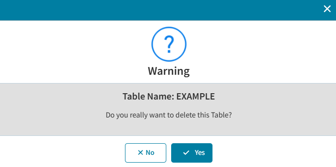 - You will then be prompted to confirm that you really want to delete this Table. Note the prompt will also display the currently selected Table Name.