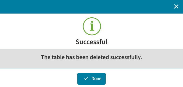 - If table is unused and can be deleted, you will receivedd a Success popup indicating the table has been deleted.