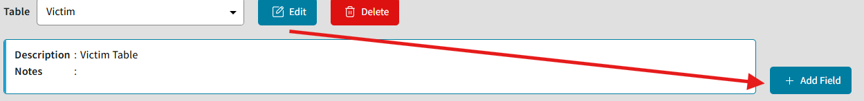 - Click on +Add Field to add a new field to the selected table. See Field Property notes below.