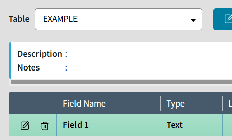 - Click the Delete icon to remove a field from the table.