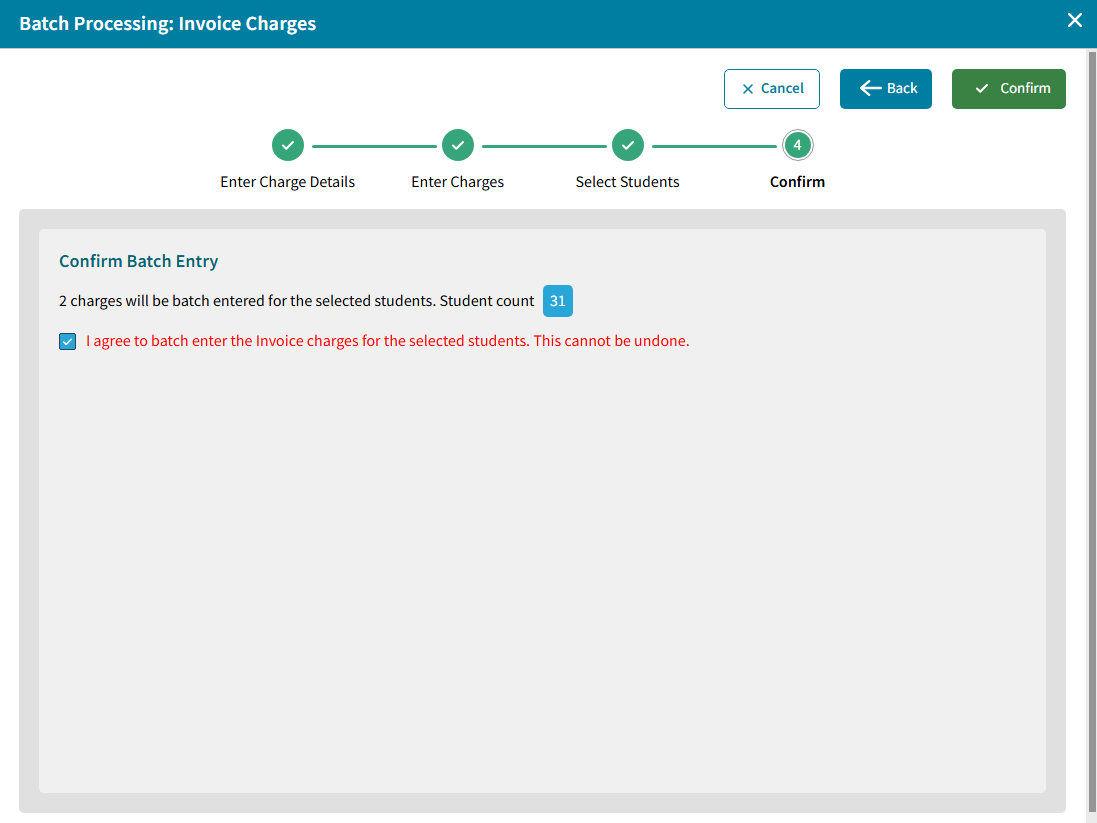 - Check the box to Confirm or use Back arrow to change selections or Cancel.