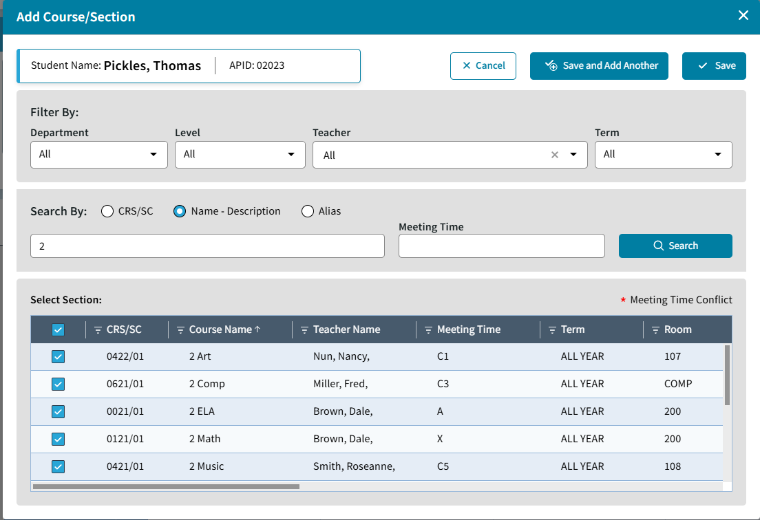 | Multi-select Course/Section | Add Course Section now features a multi-select so you can select multiple sections based on one search. | |