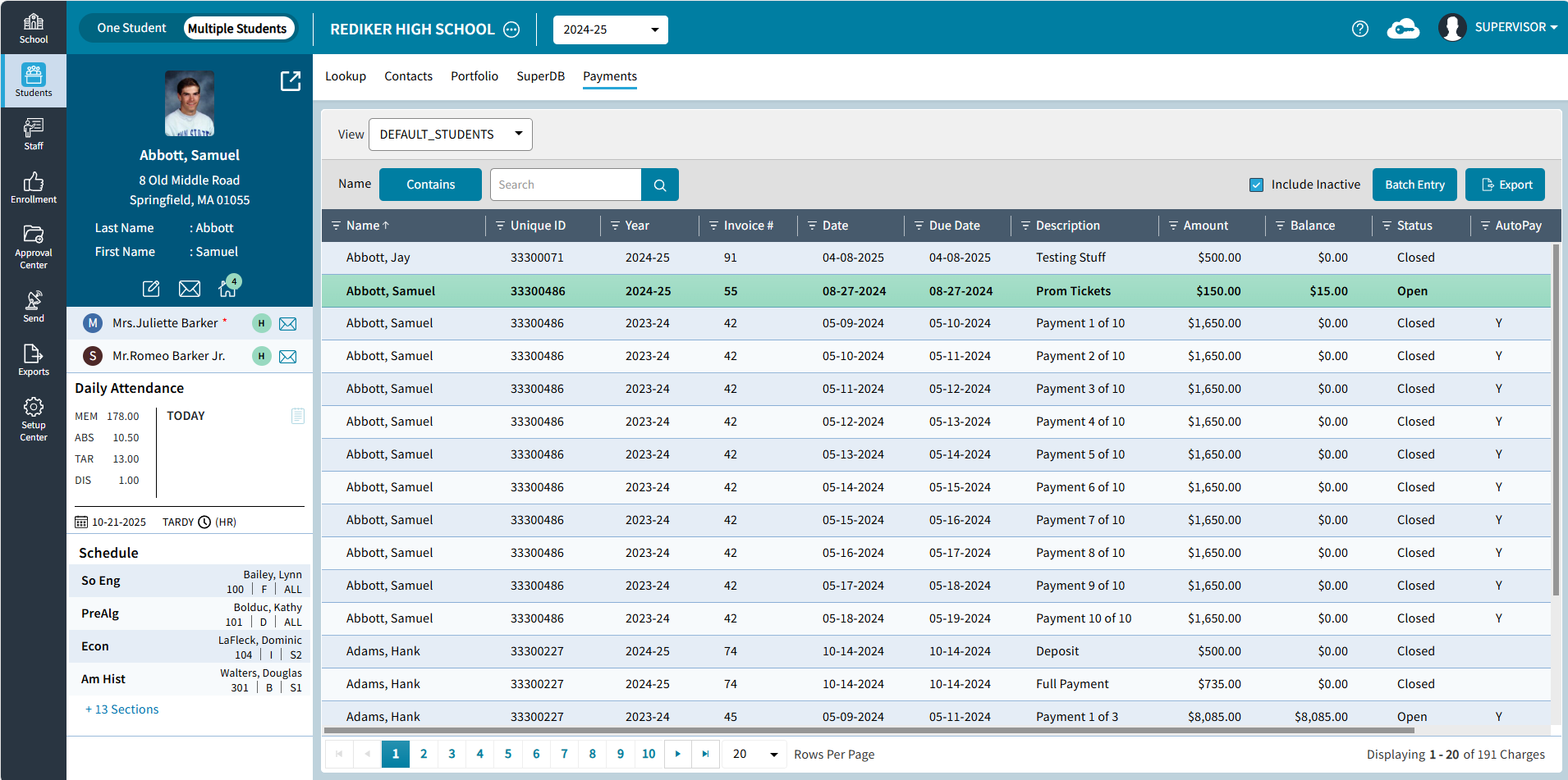 | Multiple Students > Payments | Multiple StudentsPayments tab has been added to see all the detail from the Student Payments tab for all students. | |