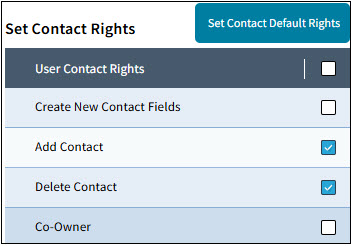 - Set Contact Rights: These are the 4 major rights for Contacts. The individual field rights will be discussed below.