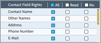- Contact Field Rights: Use the Contact Fields Rights to set the rights for individual contact fields.